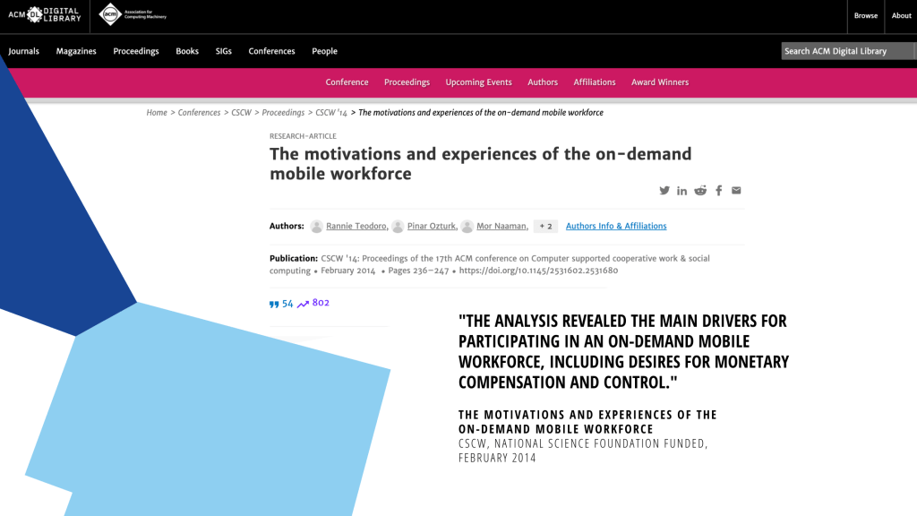 Motivations & Experiences of the On-Demand Mobile Workforce
