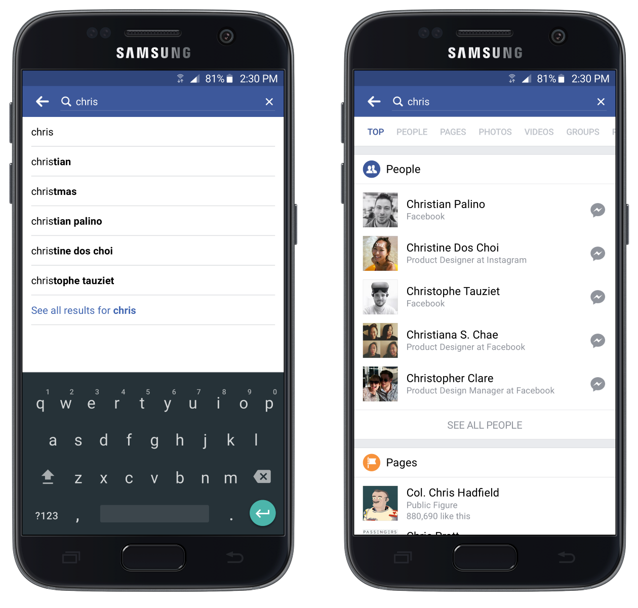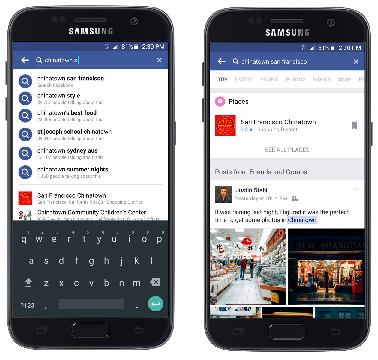 “Facebook Search was originally designed to let people easily navigate to profiles, businesses, groups, and events. Over the past few years it has grown to include other types of Facebook content, such as the posts, photos, and videos we share in News Feed. With each new addition, the design of the system became increasingly more complex.” You can read more here.